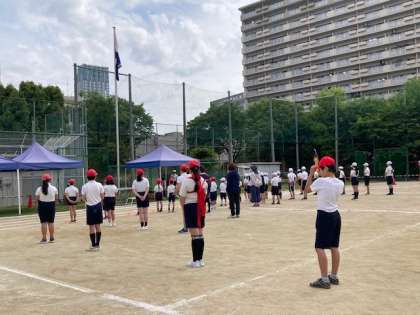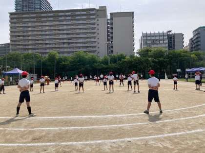 今日は開閉会式・応援合戦の練習です。6年生がきびきびと動きます。
