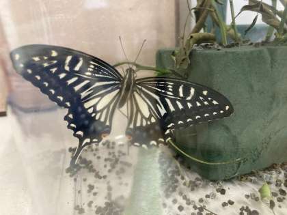 本校の先生の畑出身、敷津地域出身の「アゲハチョウ」がそろってきれいに羽化しています。