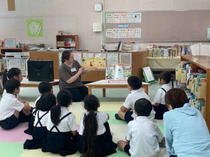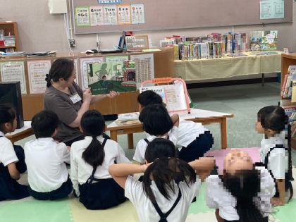 司書さんに読み聞かせをしてもらいました。絵本の世界に入り、どんどん前のめりになる人も。