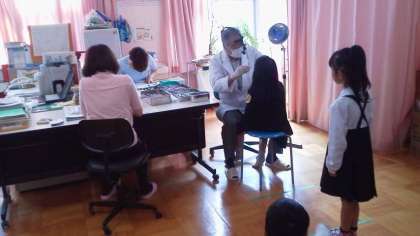 1年生から順番に学校歯科医の藤田先生が歯と口の様子を診てくださいました。