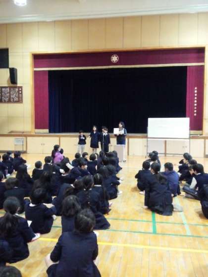 12月19日(月)、児童朝会でビブリオバトルを行いました。