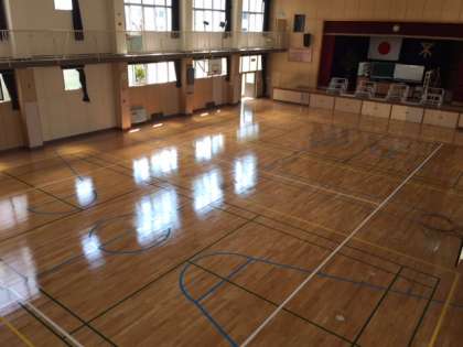 まずは、削り。2日間かけて床が真っ白に。その後、下地処理、塗装、ワックスと…。