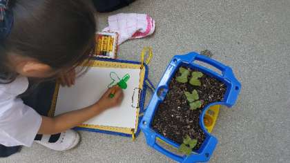 「せんせい!ちっちゃい葉っぱがでてきた!」