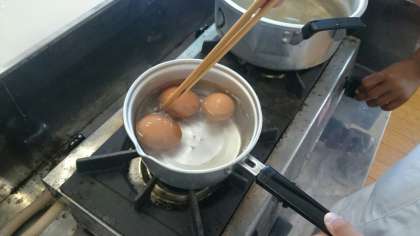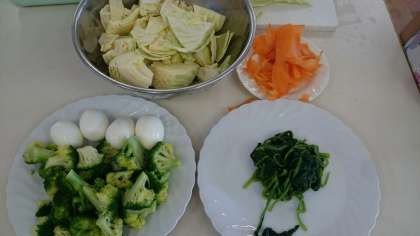 メニューは、「ゆで野菜」と「ゆでたまご」