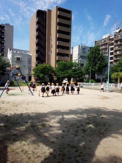先生「公園までは、校区なので、子どもだけで行くこともできますが、車が通る大きな道を渡るので、おうちの人が『いいよ』と言ったときだけにしましょう。公園の向こうは、もう、校区ではないので、子どもだけで行ってはだめですよ。」