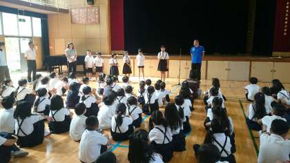 敷津小学校では、朝会の時にお誕生月スピーチを行っています。