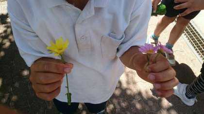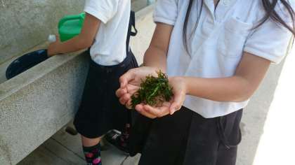 1、両手に持っているのが、ビオトープの水草(キンギョモ)