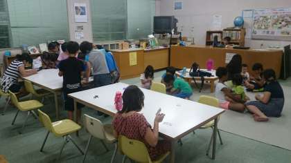 もう一枚の写真は、待っている子どもたちの様子です。待っている子どもたちもたくさんいて、とてもにぎやかで楽しそうです。