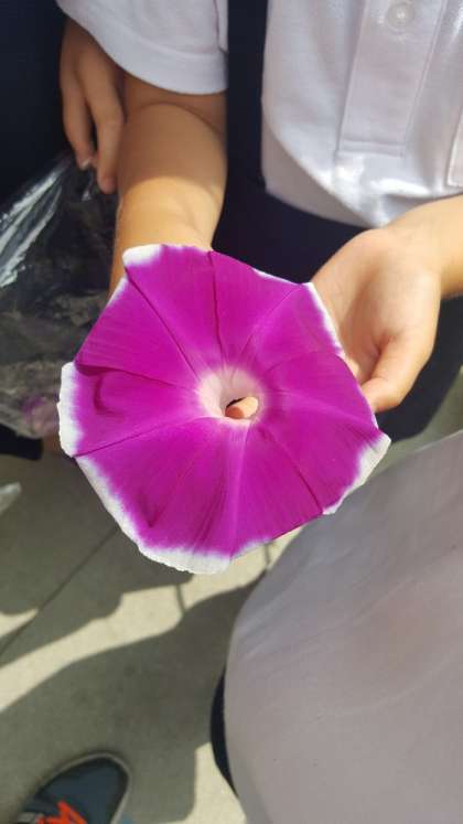 きれいにさいている花には、今日だけ「ごめんなさい」をして、つみとって入れます。