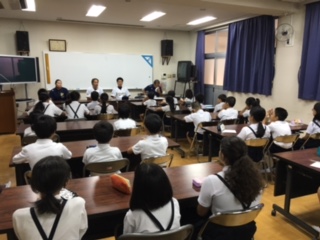 本日、元プロ野球選手、ソフトボール日本代表(オリンピックゴールドメダリスト)、プロ野球トレーナーの方々の学校訪問がありました。さすが元トップアスリートということもあり、みなさん身体が大きく迫力があって、子どもたちは「体大きいな」・「身長何センチあるの」などと言って驚いていました。