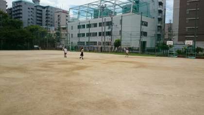 暑すぎて誰もいない20分休みの運動場に男子2人と女子1人。
