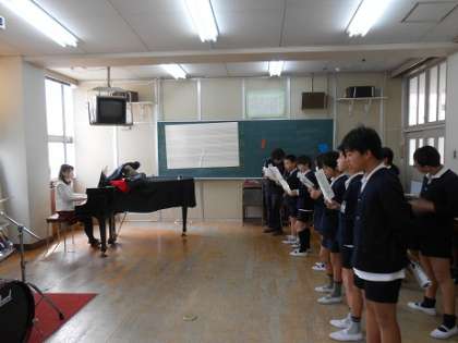 そこで、地域の方に声をかけさせていただいたところ、本校の卒業生でピアノが堪能な原(旧姓:米田)昌美さんが弾いてくださることとなりました。