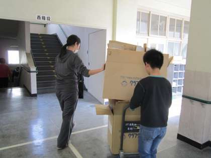 図工室、音楽室の片づけ、図書のバーコード化、給食エプロン補修、トイレスリッパ掃除が続きます