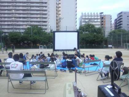 DVDやスマホ画面に慣れた子どもたちが、8ミリ映写機の映画を見ている風景は、昭和の香りがしてほのぼのとした空気が流れています