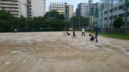 ラインテープの補修も同時進行で行い、いよいよ後半戦に入ってくる運動会の練習にそなえることができました。