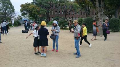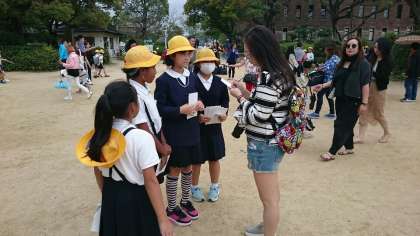 天気があやしかったので、雨が強くなる前に「突撃!英語でインタビュー!」を決行!