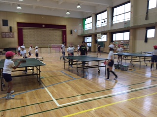 スポーツクラブは、講堂で卓球とバドミントン。自分たちでトーナメント表を作り、対戦しました。