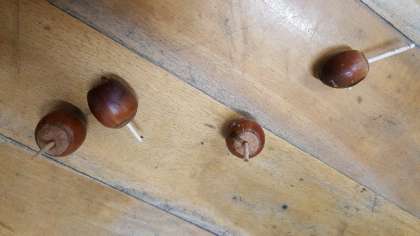 あめで、たいいくができなかったので、どんぐりごまをつくりました。