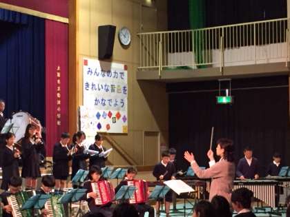 演奏前から緊張感をずっとただよわせていた5・6年生。ぼくたちが「みせるんだ!」という気持ちで演奏したそうです。難しい選曲なのに、高学年にふさわしいレベルの高い演奏ができました。