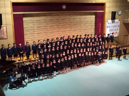 全員で舞台に立ち声を合わせて歌が歌えるのは敷津小学校の素敵なところ。大きな歌声がみなさんにも届いたことだと思います。