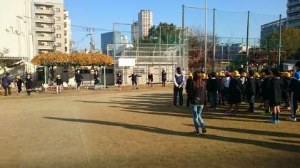 1年生から6年生まで、寒い日も元気になわとびをして体力をつけるというねらいがある。