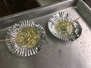 科学クラブのべっこう飴と手芸・調理クラブのアイロンビーズです。