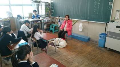 まず、3年生の教室で、講師の山本美恵子さんから盲導犬の仕事について、お話をしていただきました。