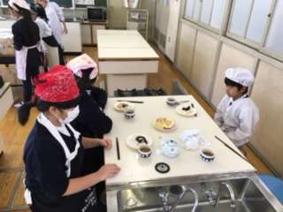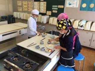 本日、5年生は調理実習で白玉団子を作ったり、リンゴの皮むきをしたりしました。これまで2度調理実習をしてきたので、どの班もテキパキ作業をして時間内で仕事をおえることができていました。白玉団子は、耳たぶぐらいの柔らかさになるまで水を加えると説明書きされていたので、子どもたちは実際に自分の耳たぶをさわって確認していましたが、実際に耳たぶをさわってもどの程度の硬さなのかわからないのが本当のところです。子どもたちは、少しずつ水を加えながら程よい硬さになるまで調節し、一生懸命に練って団子を作っていました。