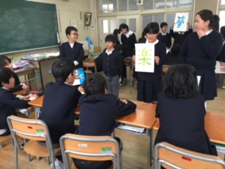 本日、5時間目に5年生が国語の学習単元の「6年生におくる字をすいせんしよう」の最終授業で6年生に贈る字を発表しにいきました。普段の休憩時間では、6年生との会話に緊張をしない5年生ですが、改まって6年生に話をするのは、とても緊張したとのことでした。5年生一人ひとりの選んだ漢字は、6年生との思い出や感謝の思いを表す漢字が多かったです。授業を通じて、お世話になった思いを直接6年生に伝えることができました。