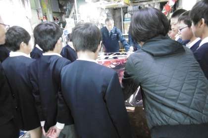 キャリア教育で、いつもお世話になっている小寺さんの会社「朝日工芸」に学習しに行きました。
