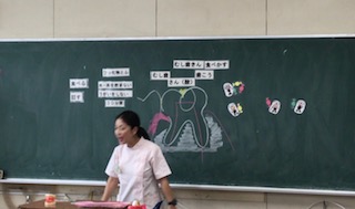 6月15日(金)、歯科校医の堀坂先生と歯科衛生士さんに、歯の大切さや・むし歯の原因・歯みがきの仕方などについて教えて頂きました。