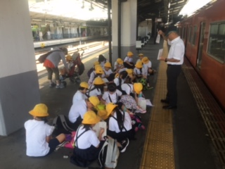 本日、3年生は、大阪環状線を一周する社会見学を行いました。今宮駅を出発し、芦原橋駅、大正駅と外回りで大阪市内の様子を約40分かけて見学しました。大阪駅では、「人が沢山いるね。」や「いっぱい人がおりるね。」や天王寺駅では、「ハルカス高いな!」や新今宮駅では、「通天閣見えた!」など大阪市内の名所を子どもたちは、自分の目で見て、実物のすごさを感じ取ることができていました。学校の中では、学びきれないことをたくさん学ぶことができました。暑いなか子どもたちは、最後まで社会見学を楽しみながら学習することができました。