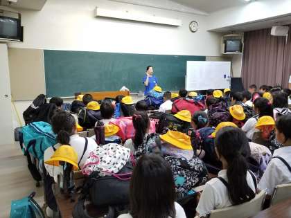 子どもたちは水泳帽を網にして