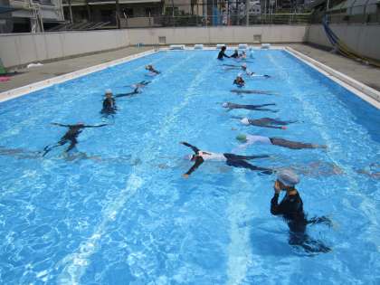 普段は、上手に泳いでいる子ども達も、プールの横幅を泳ぎきることさえままなりません。
