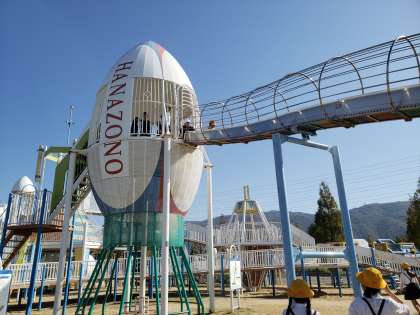 立体迷路のようなたくさんの遊具は、ラグビーボールの形。