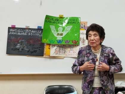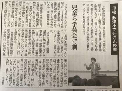 当時敷津国民学校4年生だった辻和子さんにゲストティーチャーとして
