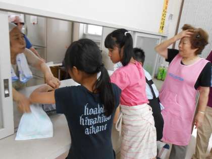 7月22日(火)は、敷津連合会館で「ふれあい食事会」がありました。地域の女性会の方が中心となってカレーを作ってくださり、地元の高齢者の方と子ども達が一緒に食事をします。
