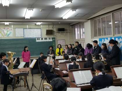 金管バンドクラブの練習が聞こえてきて、音楽専門の先生がとても興味をもってくださったので、練習風景も視察していただきました