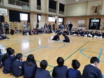 講堂の真ん中で