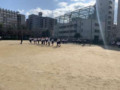 今日からかけあし週間が始まりました。20分休憩になると、全校児童が運動場に集まります。準備体操をして、走ります。自分たちのペースで最後まで。