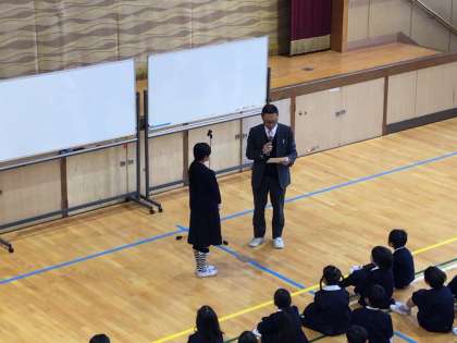 校長先生の急な呼びかけに三人の児童が応えて手伝ってくれました。