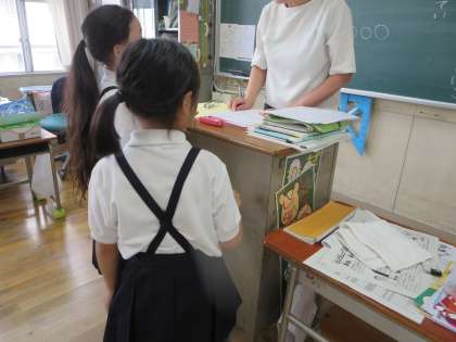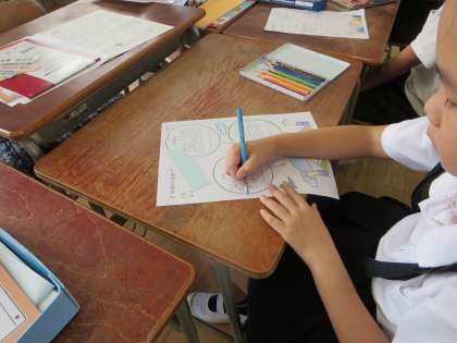 始業式の後、2・3年生は教室で2学期の目標を書いていました。