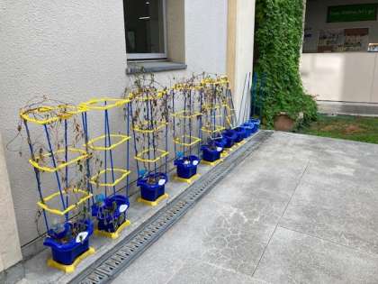 朝顔の植木鉢、ひと夏を児童のお家で過ごしました。