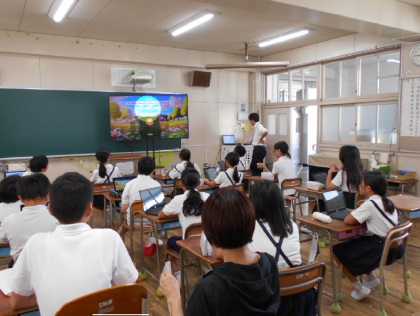 日曜日も元気いっぱい。4・5年生朝の外国語。