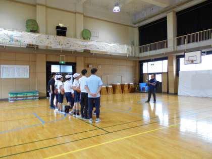 写真は昼休みに講堂でスポーツクラブが撮っていただいているところです。