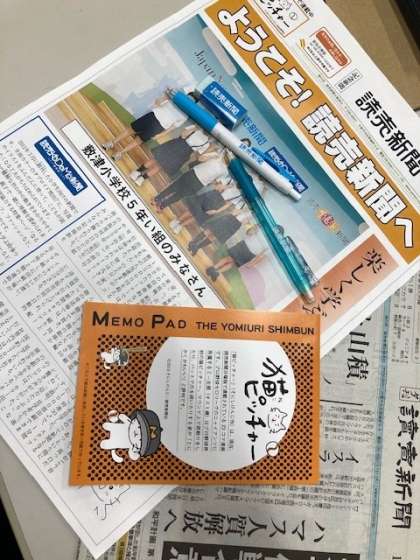 実際に記事を書いておられる部屋、新聞がとじられていく場所も見学させていただき貴重な経験になりました。(社内は撮影できませんので、いただいたお土産を写真に撮りました)