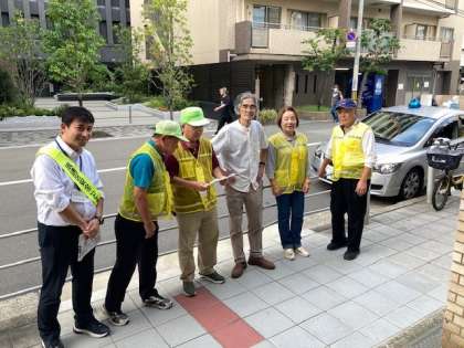 放課後、敷津地域の辻に地域の方が立ち児童の下校を見守ってくださいました。