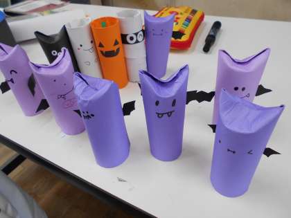 トイレットペーパーの芯を利用して、ハローウィンの飾りをつくります。
