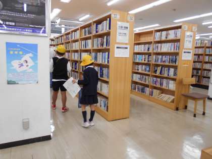 校区にある浪速図書館へいきました。図書館には1日300人もの人が来るそうです。学校の図書室との違いについても考えました。