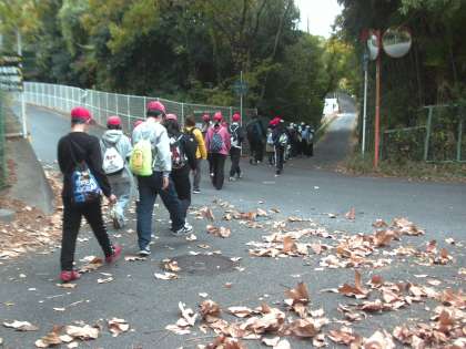 キャンプ場への道。落ち葉がきれいでした。